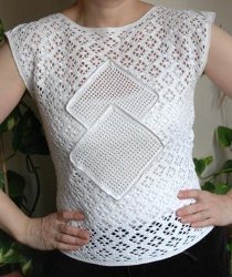 This lace summer top looks like it could have been purchased in one of those high end boutiques. I read of the directions when I saw filet inserts because I know how to do those thinking that was the reason why the skill level is advanced. I was wrong. The filet part is not what is complicated. Beautiful top but out of my league.