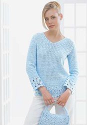 Wow! This Lacy Tunic is lovely! It looks so soft too. You sure don't see items like this...the tunic and the purse... that coordinate with one another very often. It's great that the pattern gives us the directions for several different sizes. I also like that the v-neck is a v-neck but not ridiculously low cut and it has 3/4 length sleeves. I see that the pattern is designated an intermediate and since I'm a novice I will add this on to my "to grow into" list and look forward to doing it in the future!