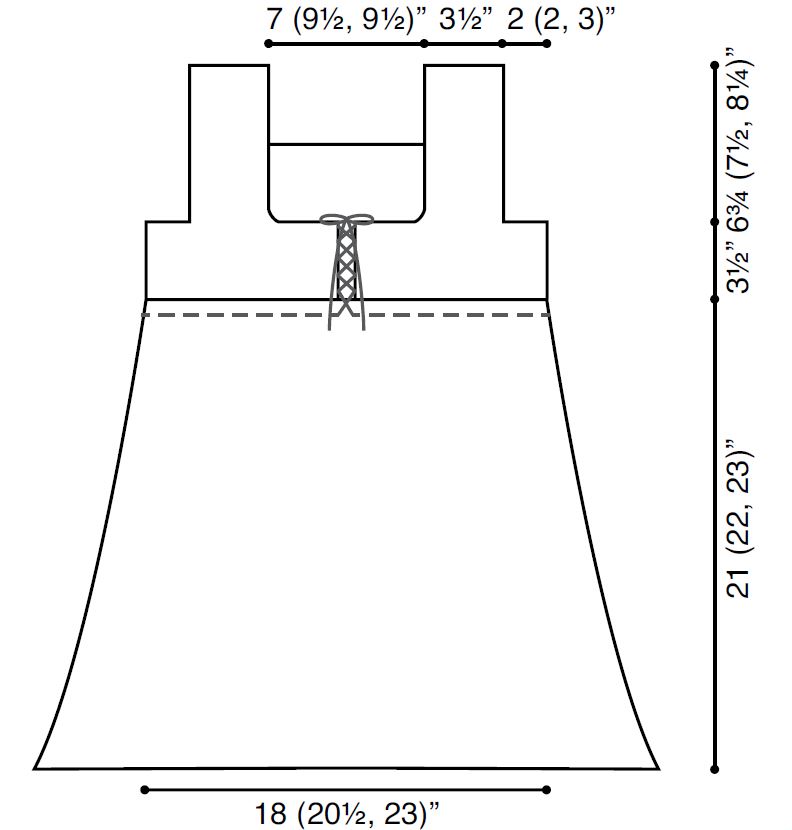 Beginning at center back, weave one end of drawstring through eyelet round (Round 2) on either side of body to center front, then crisscross ends and weave through eyelets along front of each bodice. Tighten or loosen drawstring to adjust fit as desired. Tie drawstring in a bow at top of Front.