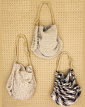 I love these bags! Such an interesting design and using cord for the handles is a great touch. The bags are lovely and big too and I can definitely see myself making several in different colors which is what often happens when I come across a pattern that I really like so I am probably going to be busy for a while, lol.