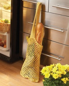Worked in Bernat Cotton-ish in a lemon twill color, this Sunny Days Market Bag will satisfy your need to make a simple crochet pattern. This tote is a nice crochet design that will hold all your favorites the next time you go to the farmer's market. Measuring approximately 13 inches wide by 15 inches long (excluding handle), you can shop 'til you drop. If you bring one essential while shopping for groceries, aside from your list, this crocheted bag is it. The lemony color is nice and springy which will make your browsing experience a bright one.