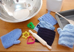 This free crochet pattern is for the more advanced beginner. Have fun crocheting this baker set for your little ones. Worsted weight yarn is used.