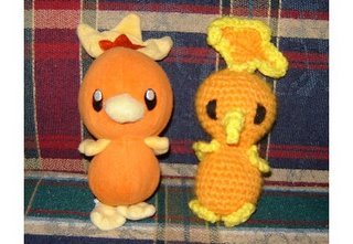 Bright orange sport weight yarn turns this pattern into a great Torchic character. Pokemon characters can be brought to life with this free crochet pattern.