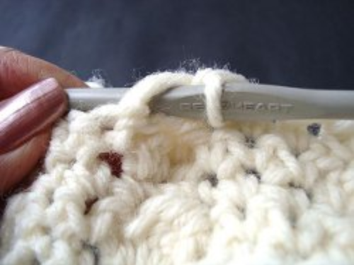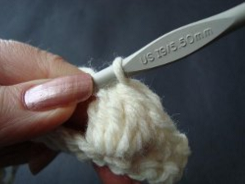 Image below: Single crochet in the center stitch of the back side of the bobble stitch. -