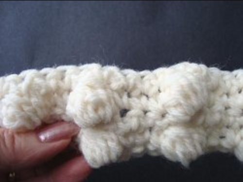 Chain 1 and turn, single crochet in each stitch across the row. ( In the bobble stitch, single crochet in the center stitch.)