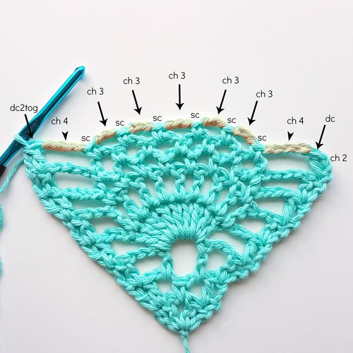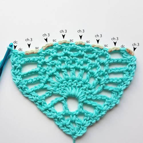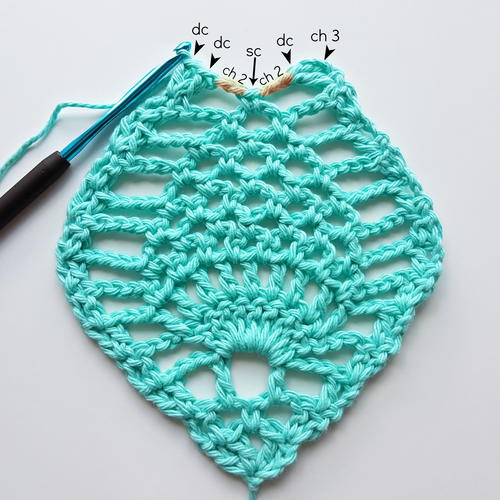 This project is crocheted back and forth in rows, from the bottom point to the top point. If you would like to add an optional edging it has been included at the end of the post. The optional edging is worked in joined rounds.