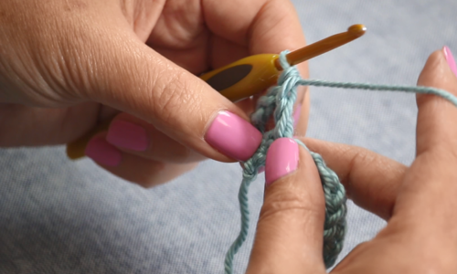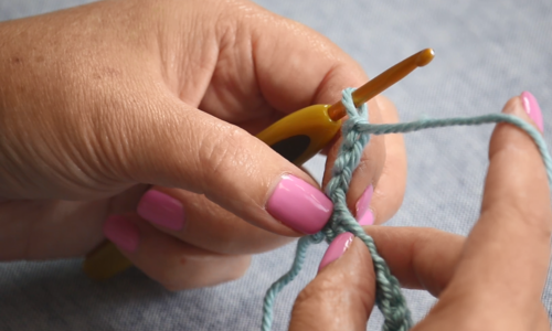 To do a v stitch row, chain three from your previous row. The chain three will count as one stitch, so skip your second stitch.