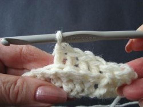 When you arrive at the end of the row, chain 2 and turn. Repeat steps 3 and 4 throughout the construction of your project.