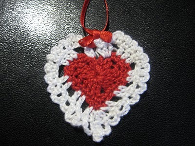 Use a granny heart pattern like this one to make a heart ornament. Make one with this free crochet pattern or make many. Attach them on a string and make a fun decorative garland for Valentine's day.