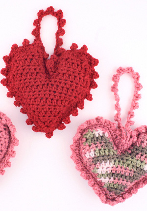 With this easy crochet pattern and some Red Heart Super Saver yarn you can make some heart shaped sachets. Add some potpourri for a fabulous smelling home. You can also hang them on your walls for some fun decorative decor.