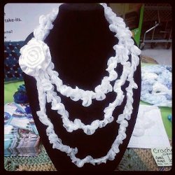 Walk down the isle looking beautiful in this Chiq Crochet Wedding Necklace. This is a stunning piece of jewelry that gives just the right amount of detail. You can even add a little bling to the center of the flower. It's an easy crochet pattern that just uses chaining!