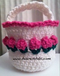 This is a cute little bag that makes up pretty quickly. Debis youtube channel has video tutorials for the many of the stitches she uses, including the flowers for this basket. With Easter, Mothers day, and wedding season right around the corner, this pattern is a great find. You could omit the handle and make nice cozies for plant pots and containers too!